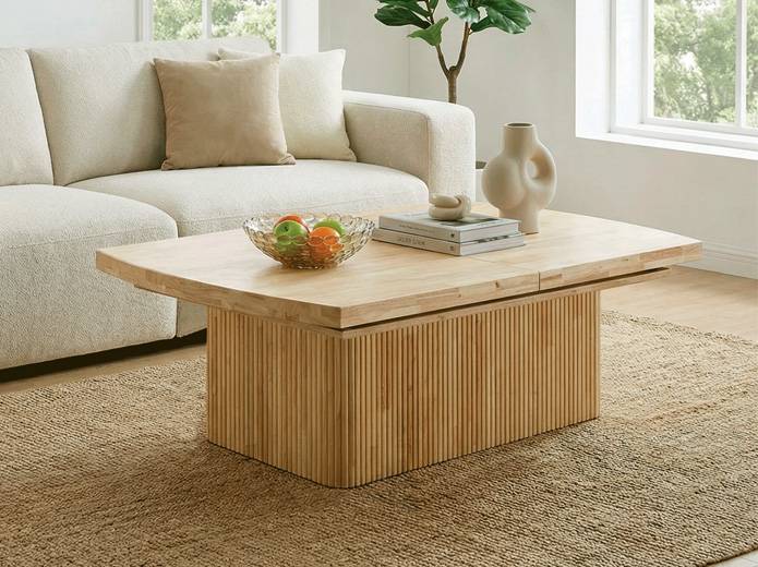 La Mesa de Centro Michelle combina calidez natural, diseño contemporáneo y una funcionalidad excepcional. Su tapa de madera maciza y chapa de roble ofrece una textura suave y sólida, con acabado nordish que aporta luminosidad y armonía al salón. Bajo su superficie se esconden dos extensiones independientes que permiten ampliar la mesa de 120 a 160 o 200 cm, gracias a un sistema de apertura sincronizada que garantiza suavidad en cada movimiento.