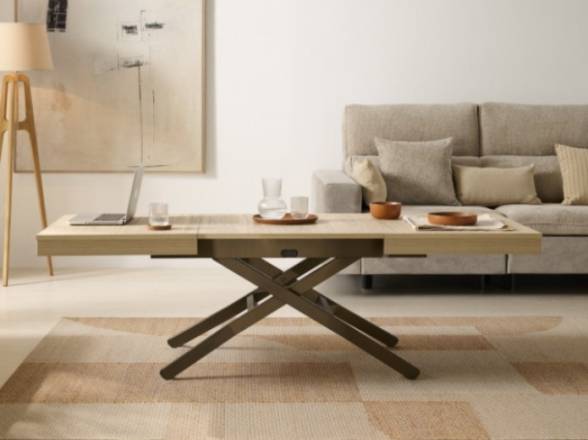La mesa Novelty es una de las opciones más completas y prácticas para hogares en Madrid que buscan aprovechar al máximo el espacio sin renunciar al diseño. Gracias a su sistema elevable y extensible, esta mesa de centro se adapta fácilmente a diferentes usos: desde mesa auxiliar hasta mesa de comedor.