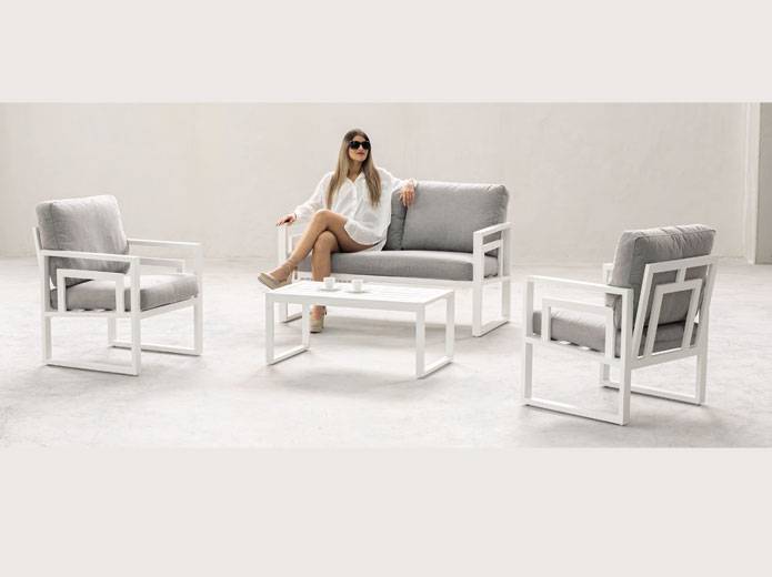 El set de muebles de exterior está formado por el sofá de 2 plazas, 2 sillones de una plaza y mesa de centro