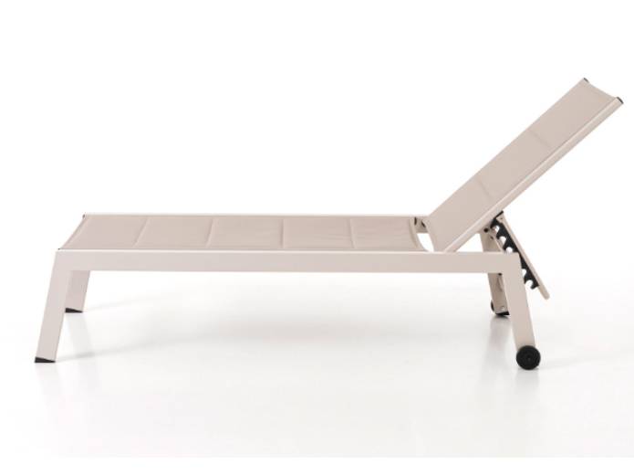 El acabado en aluminio beige aporta un toque actual y elegante, mientras que el textilene beige acolchado ofrece una experiencia de descanso muy confortable, resistente y de fácil mantenimiento. Su sistema reclinable permite ajustar la posición según cada momento: leer, tomar el sol o relajarse con total comodidad. Además, incorpora ruedas que facilitan su desplazamiento sin esfuerzo, adaptándose fácilmente a distintos espacios.